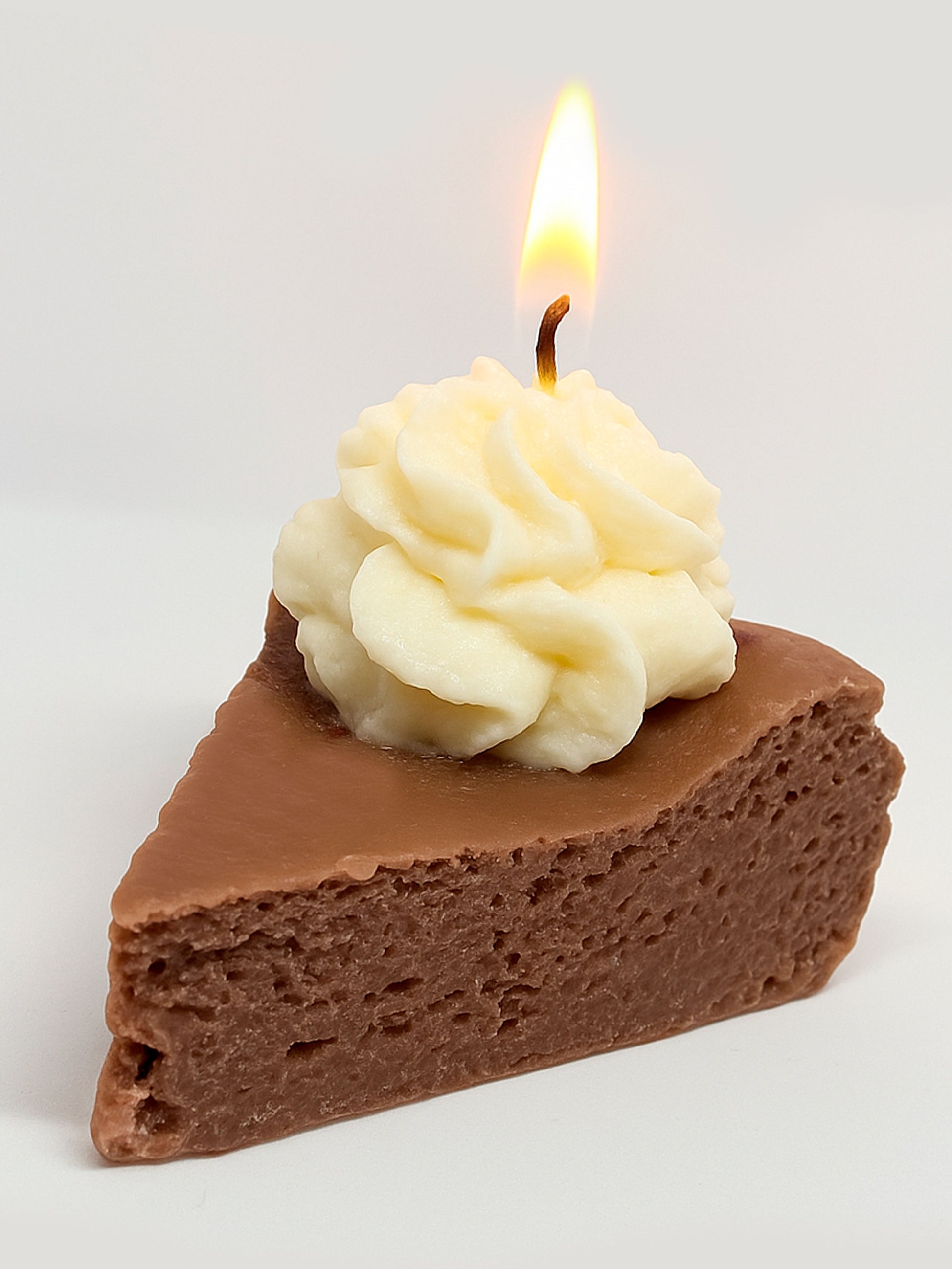 Tan tentadora como una rebanada de pastel, pero hecha completamente de cera. Choco Cake es una vela artesanal elaborada 100% con cera de soya vegetal, libre de aditivos y totalmente decorativa.