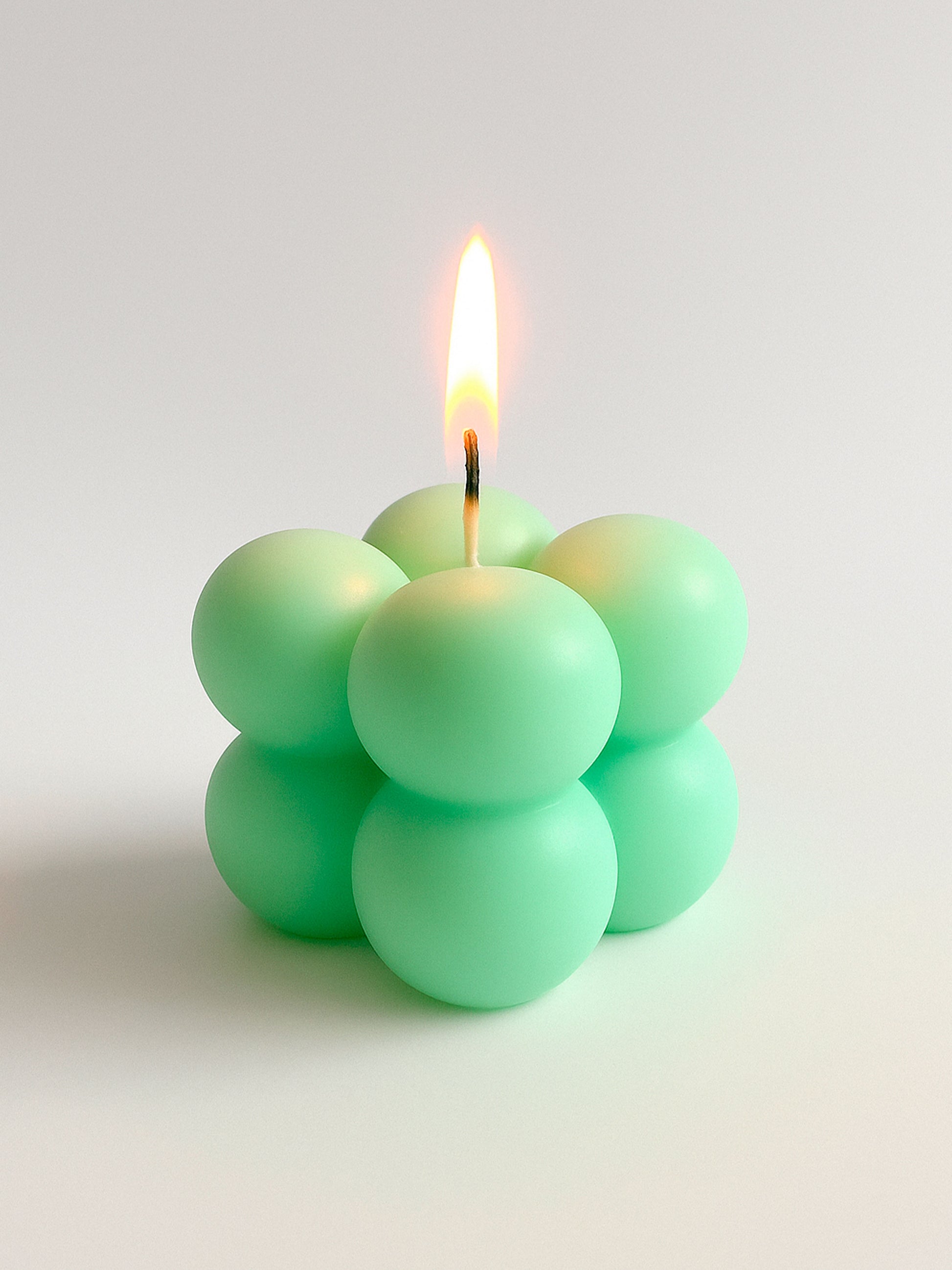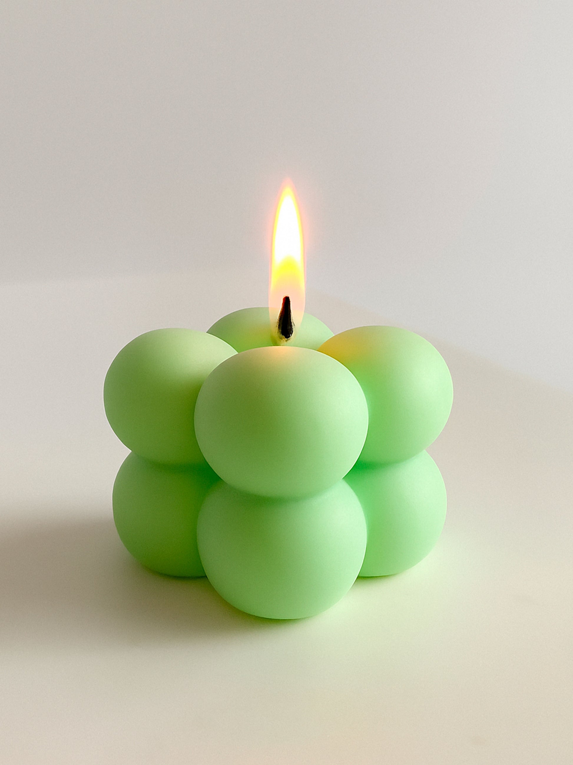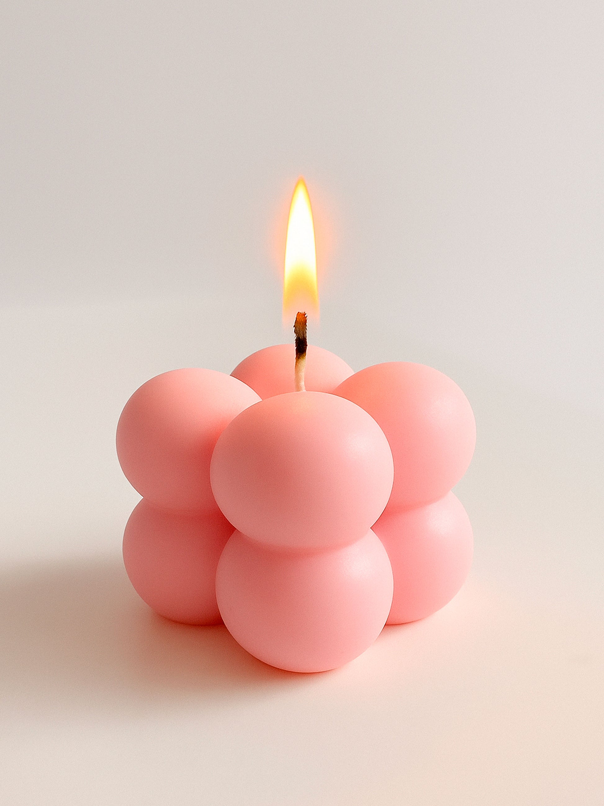 Su diseño moderno en forma de burbujas compactas aporta estilo y calidez a cualquier espacio. Perfecta para regalar, usar en sets decorativos o sumar a tu colección de velas minimalistas.